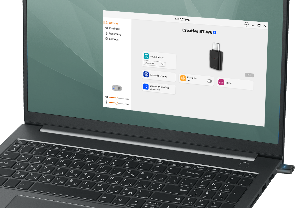 Creative BT-W6 comes with a microphone input, allowing automatic detection* of microphone input whenever it's needed for communication by an application or software. Automatic activation can be turned on or off via the Creative app.
