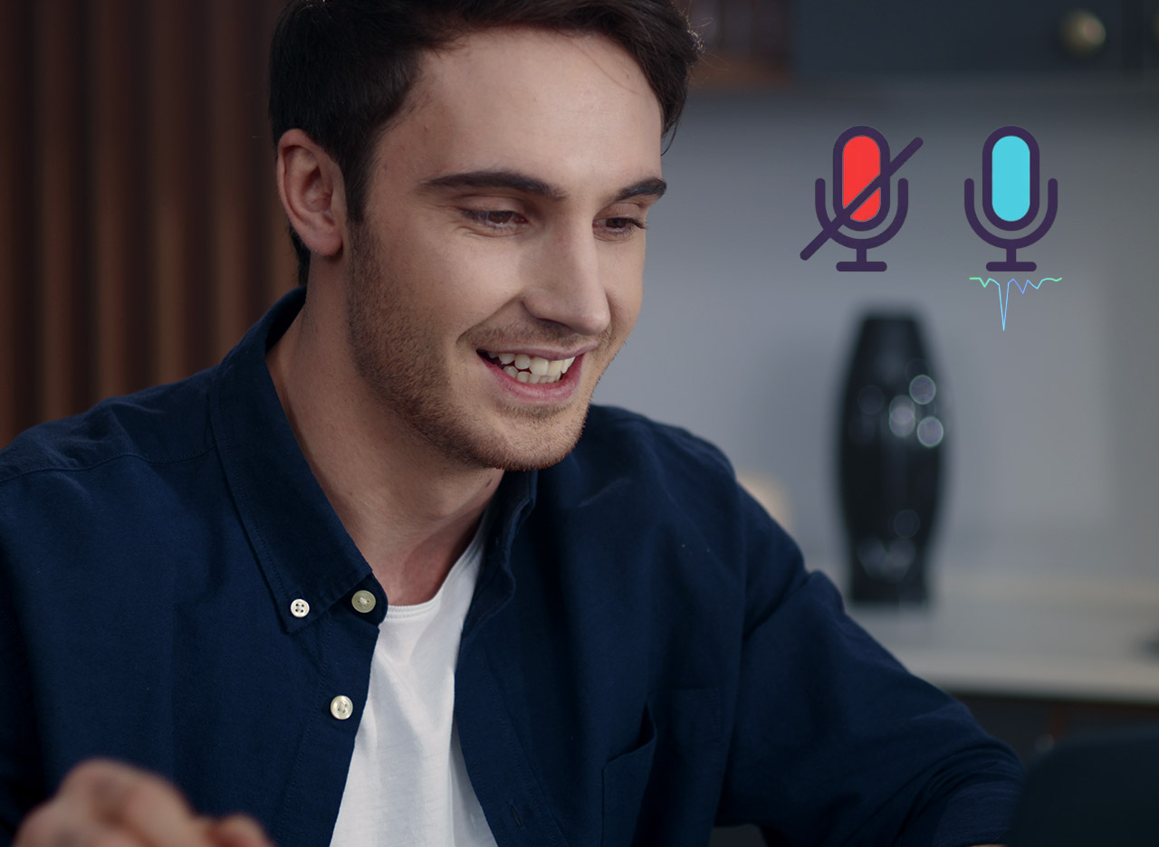 Our VoiceDetect feature controls your mute status by voice detection as you speak—the webcam's microphone gets muted automatically after you stopped speaking, and unmutes you instantly as you start to talk. There is absolutely no need to fiddle with any buttons whether physical or in-app, so you look professional and well prepared throughout the entire meeting, and lets you stay focused on your train of thought.