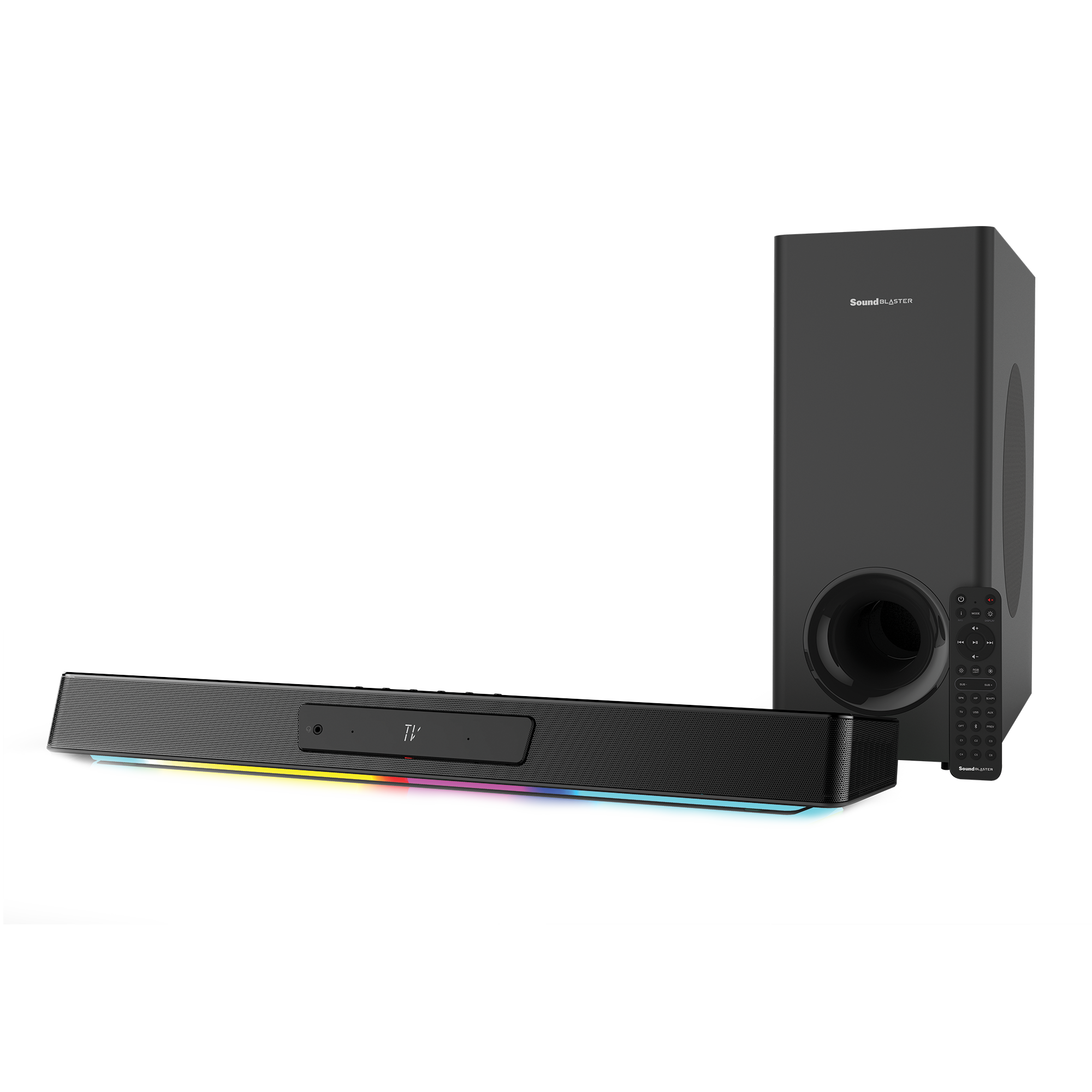 Sound Blaster Katana V2 comes with all the customization options you need. Further tune its audio performance to suit your liking with Sound Blaster's processing technologies and EQ settings on the Creative app. With the app, switch up the RGB lighting by selecting your choice of up to 16.8 million colors to match your mood, or save your custom presets to any of the programmable buttons on the remote control!