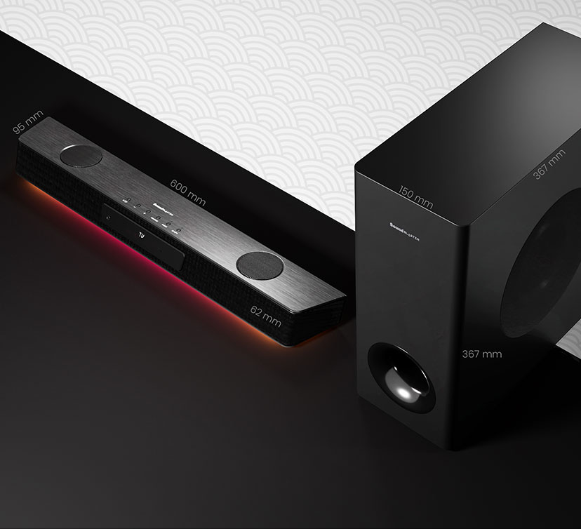 With the soundbar exhibiting a similar sense of nuance and vigor that of an agile, sharp blade, the audio system is capable of reproducing rich audio prowess and strong, deep bass that will reverberate through your soul. Its sleek and elegant design fits perfectly in any living room setup, with its slim profile allowing you to tuck it under any monitor effortlessly.