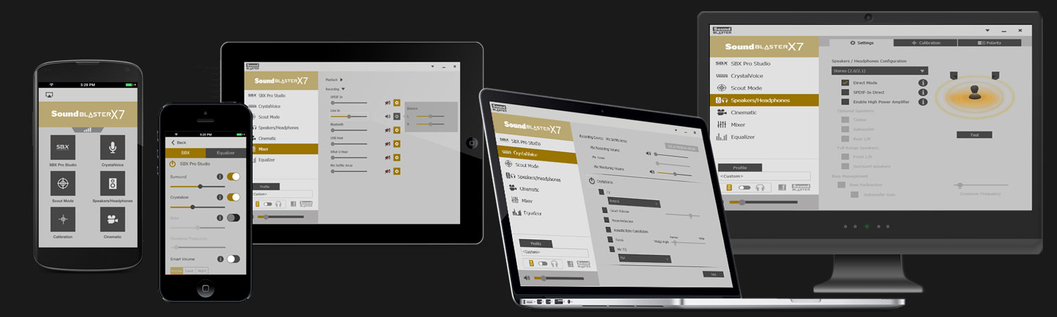 Introducing the Sound Blaster X7 Control App and the Sound Blaster X7 Control software, they make perfect pairings with the Sound Blaster X7 Limited Edition. Functioning as your personal sound controllers, they work with desktops, notebooks, tablets or any smart devices.