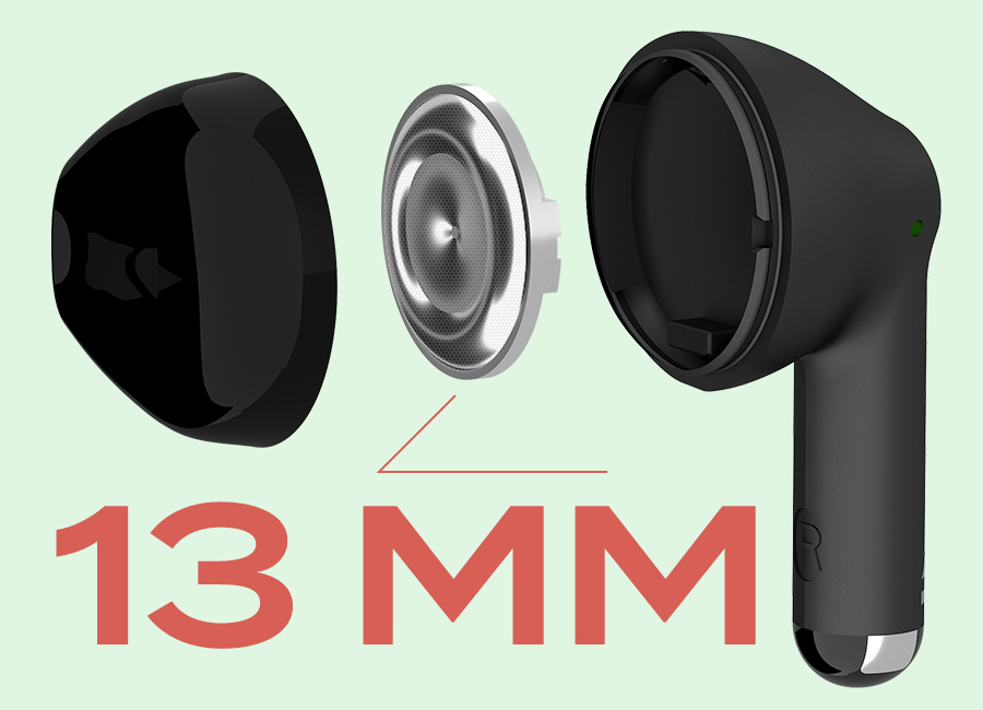 With custom-tuned 13 mm Neodymium drivers, indulge in detailed and great-sounding audio. Experience every tone, from deep bass to clear mids and detailed highs.