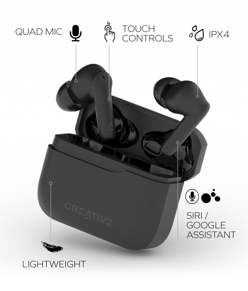 The lightweight true wireless earbuds boast a new style and look with noise control modes, a total playtime of 23 hours with 6 hours per charge, as well as an IPX4 rating, perfect as your on-the-go compact audio buddy.