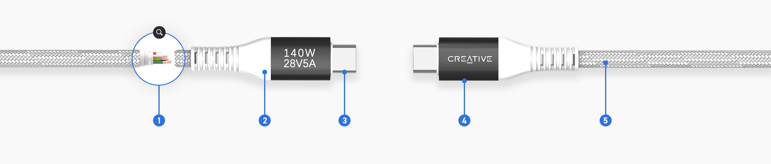 Encased in a nylon braided jacket, made from oxygen-free copper core (OFC), the 2m / 6.56 ft Creative 140W Fast Charging Cable embodies durability and flexibility. Its versatility extends to data transfer capabilities, making it a comprehensive solution. Explore high-speed charging for a variety of devices with this advanced and reliable companion.