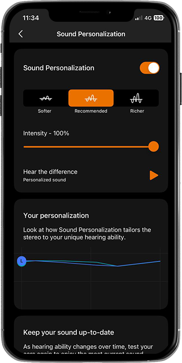 Backed by years of hearing research, adapt audio to your unique hearing ability with Mimi Sound Personalization.