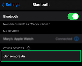Switch on Bluetooth on your mobile device. On the Bluetooth settings screen, search for Sensemore Air, and select to pair.