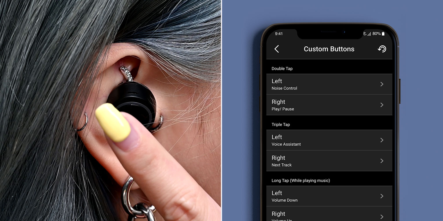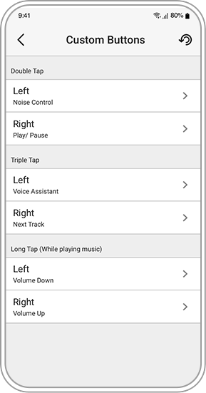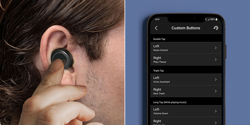 Take charge and personalize your Touch Controls the way you want them to function. The intuitive touch controls are meant to bring you comfort in familiarity and convenience, where you can manage your volume, music, and calls with just a few taps. Be it answering calls or skipping tracks, you can customize your Touch Control on the Creative app via the Custom Buttons module and tweak them as you wish.