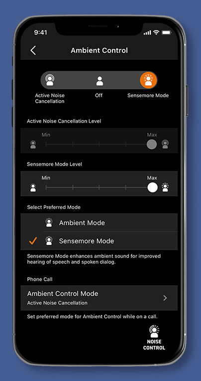 Customize and assign touch controls to your preference, make adjustments to Sensemore Mode, Ambient Mode, and Active Noise Cancellation on the Noise Control module, or even tweak your audio settings via Equalizer.